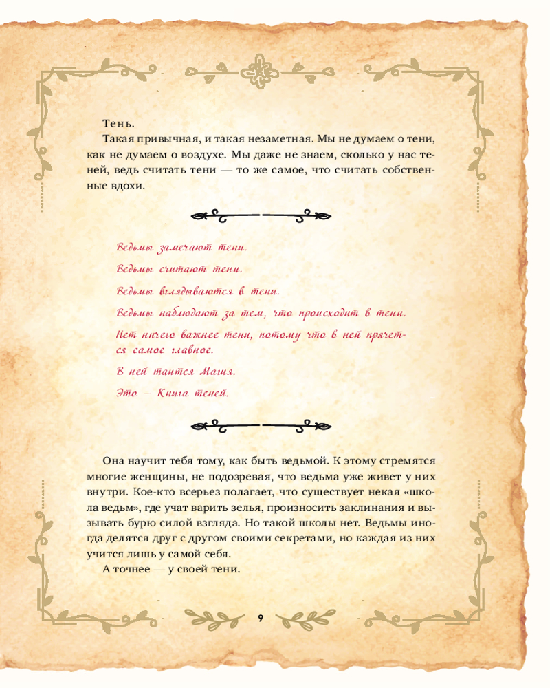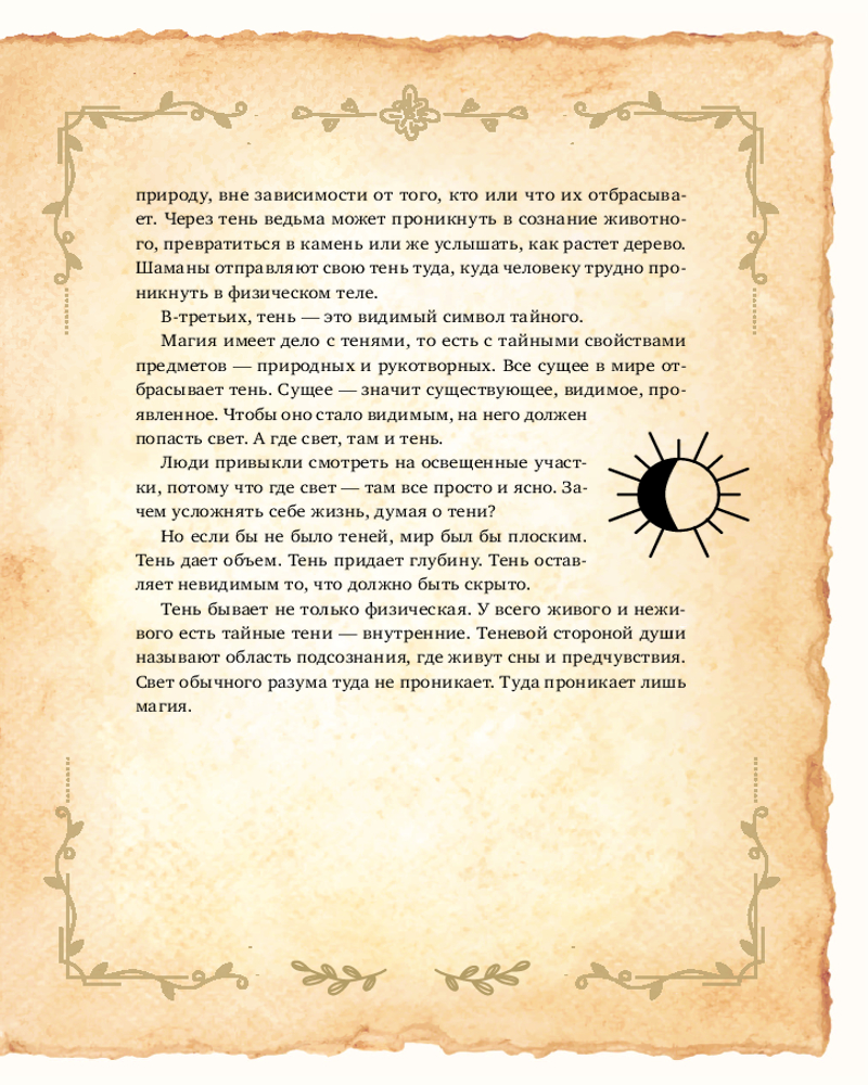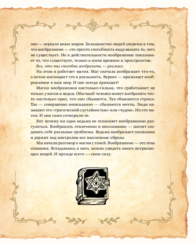 Это — Книга теней. Она научит тебя быть ведьмой. Многие женщины стремятся прикоснуться к магии, не подозревая, что она уже живет внутри них. Некоторые всерьез считают, что существует «школа ведьм», но это неправда. Ведьмы иногда делятся друг с другом своими секретами, но каждая из них учится лишь у себя самой. А точнее — у своей тени.