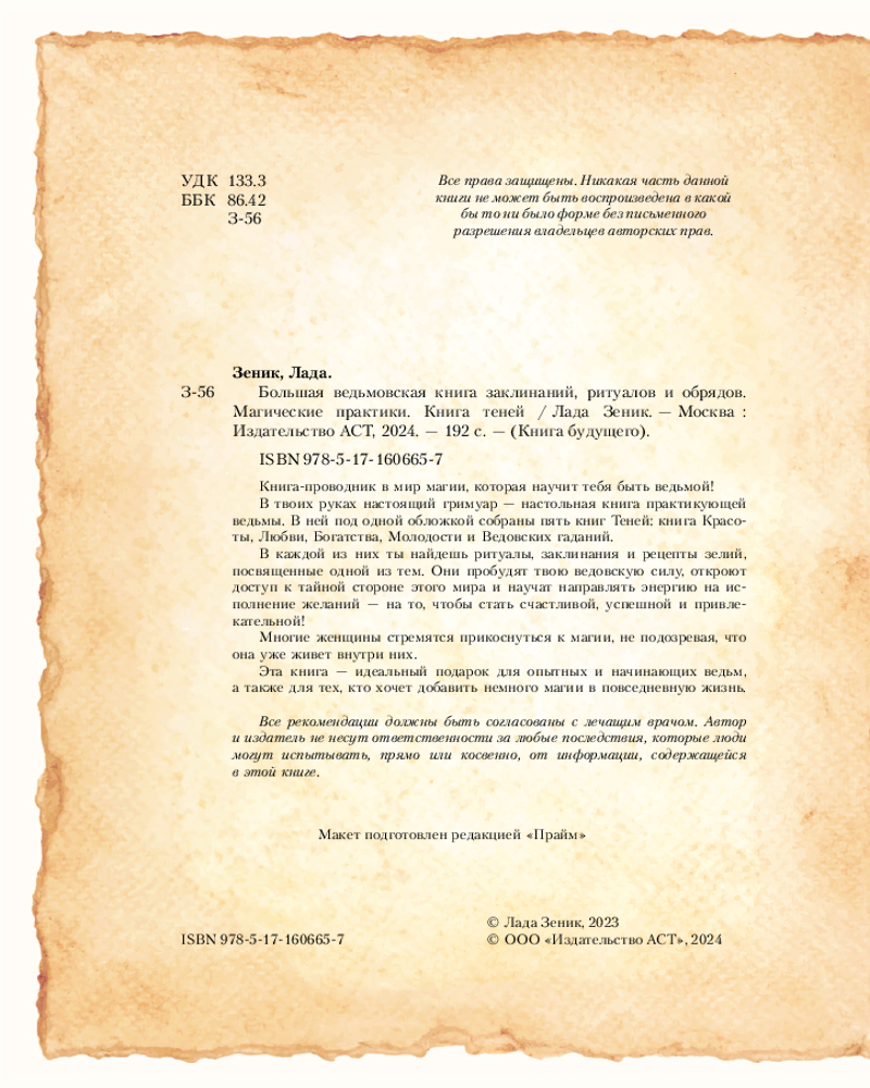 | Большая ведьмовская книга заклинаний, ритуалов и обрядов. Магические практики. Книга теней Лада Зеник +66 (бонусов)