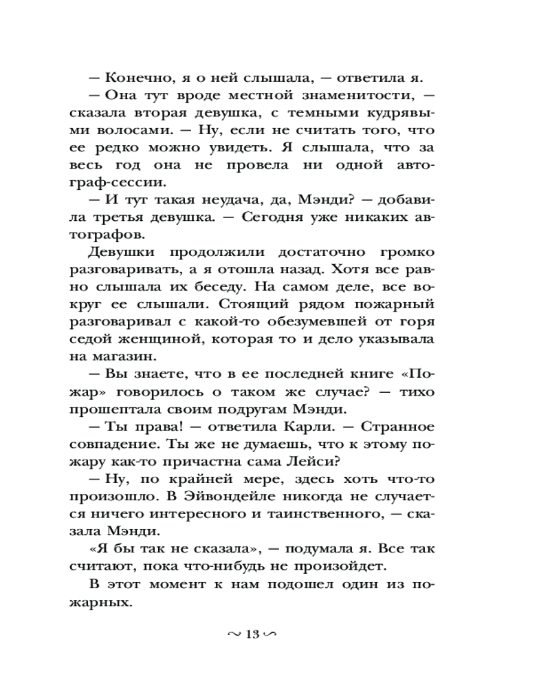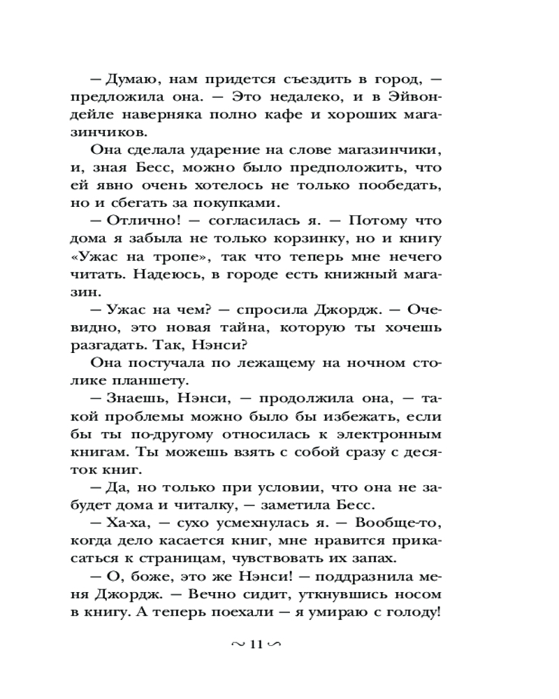 💳 Оплатить за товар можно при получении 🇰🇿 Есть бесплатная доставка по Казахстану от 1 дня 🎁 Копите бонусы с каждой покупки Серия: Лучшие истории про Нэнси Дрю Нэнси Дрю — самая известная девушка-детектив. О ней можно прочитать книги, увидеть ее на экране и даже поиграть в компьютерные игры с ее участием. В книге «Нэнси Дрю и зловещие совпадения» Нэнси с подругами отправилась отдыхать на озеро. Но не тут-то было! Преступления буквально преследуют девушку. И вот в тихом городке случается пожар, происходит кража, в ночи кто-то пытается проникнуть в коттеджи на турбазе. Нэнси предстоит раскрыть все эти таинственные преступления. Для среднего школьного возраста. |