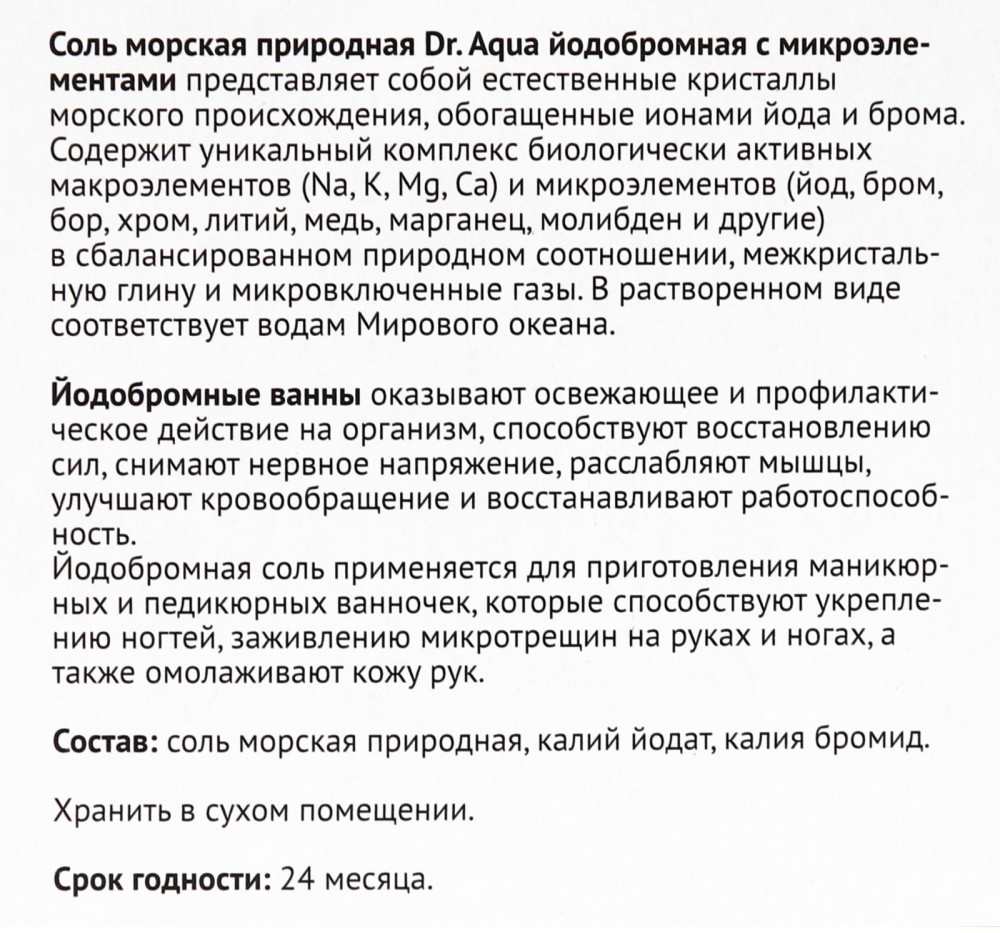 Dr.Aqua Соль для ванн йодобромная-25% +11 заживление ран маленькая упаковка качество соли