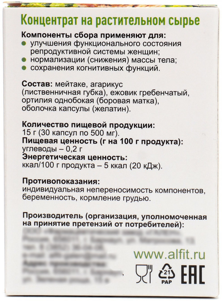 | Алфит Концентрат на растительном сырье «Мейтаке с боровой маткой»