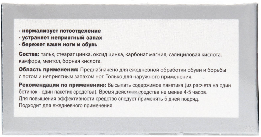 Купила сыну. Надеюсь, что пригодится, т.к. в закрытой обуви ходит целый день, поэтому иногда попахивает потом.