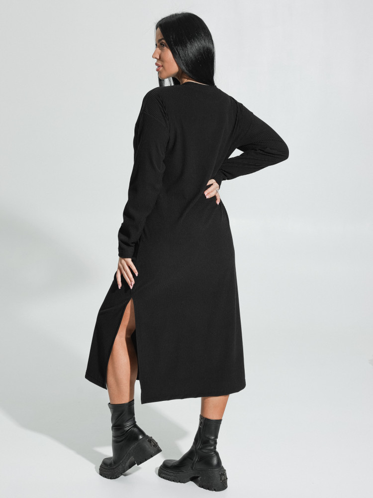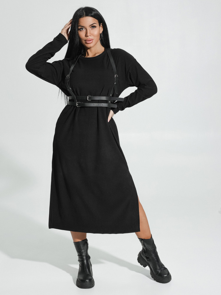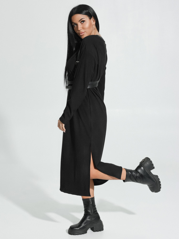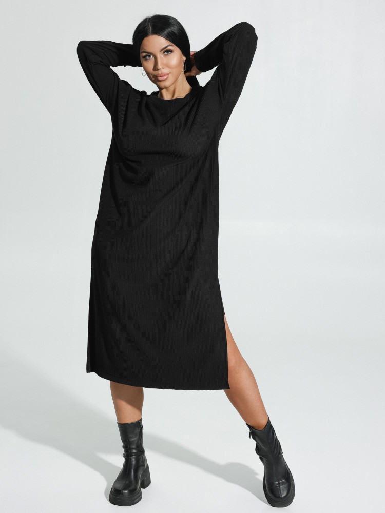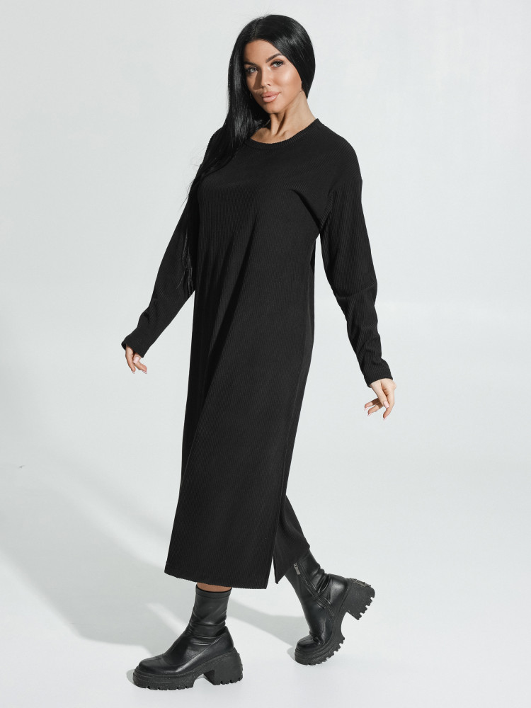 Казалось бы, самое простое базовое платье, но смотрится огонь! Сидит по фигуре, ткань очень мягкая, по типу лапша с небольшим ворсом, так скажем. Очень удачный крой рукава, по типу "летучей мышки", но не добавляет объема и не размывает силуэт. Разрезы по бокам достаточно высокие. На осень, с ботиночками и аксессуарами то, что нужно👌