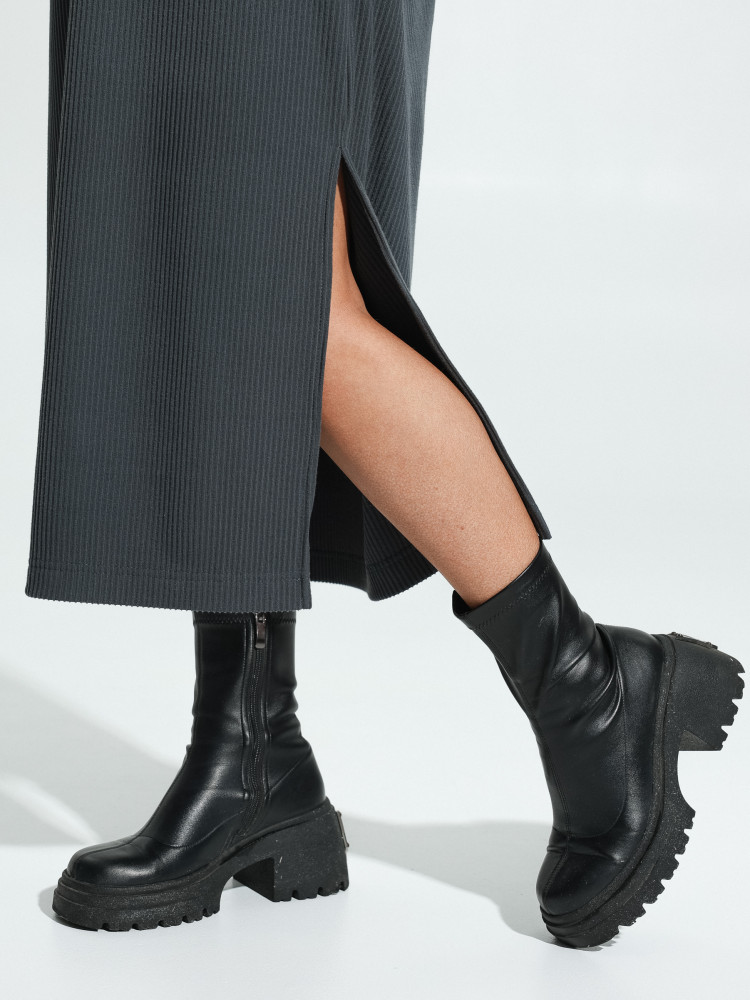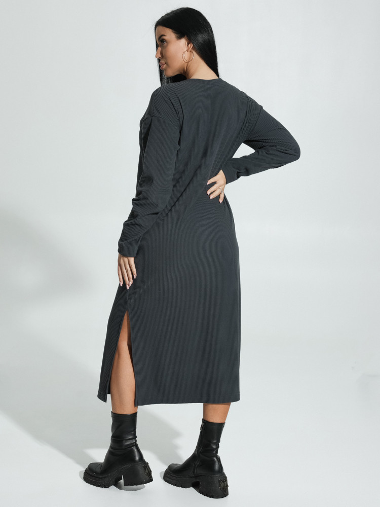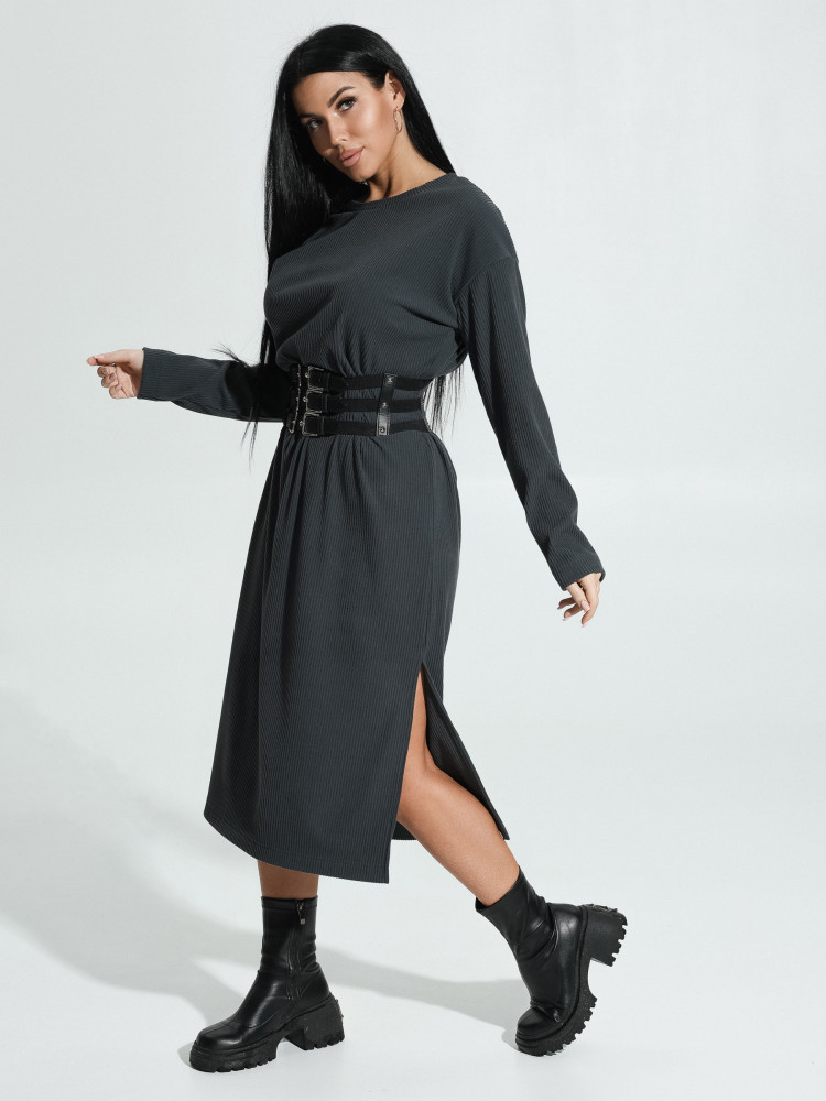 Казалось бы, самое простое базовое платье, но смотрится огонь! Сидит по фигуре, ткань очень мягкая, по типу лапша с небольшим ворсом, так скажем. Очень удачный крой рукава, по типу "летучей мышки", но не добавляет объема и не размывает силуэт. Разрезы по бокам достаточно высокие. На осень, с ботиночками и аксессуарами то, что нужно👌