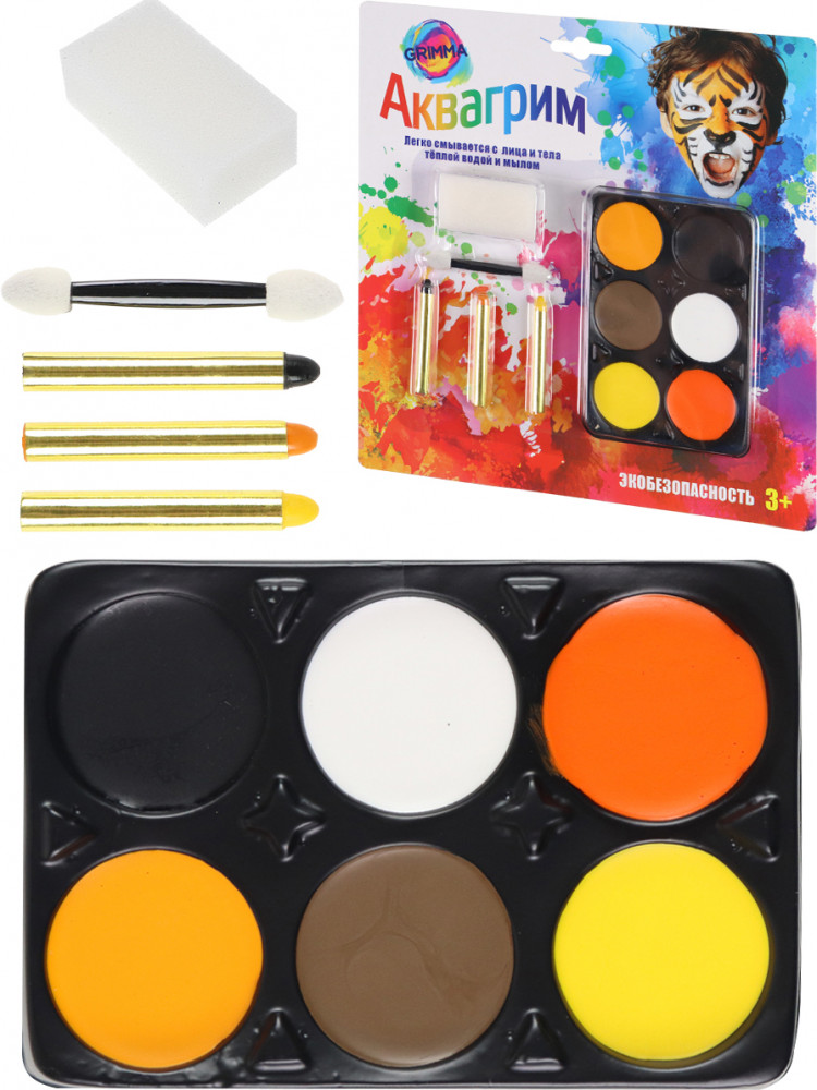 Набор аквагрима поможет украсить любой детский праздник или театральную постановку! С ним будет легко фантазировать и украшать лица рисунками, узорами, создавать любой образ. Краски легко наносятся и смываются, безопасны для детской кожи.
