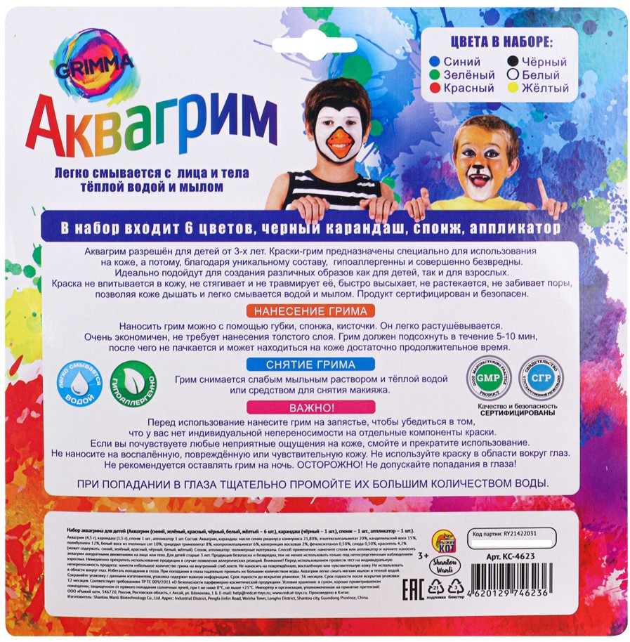 Набор аквагрима поможет украсить любой детский праздник или театральную постановку! С ним будет легко фантазировать и украшать лица рисунками, узорами, создавать любой образ. Краски легко наносятся и смываются, безопасны для детской кожи.
