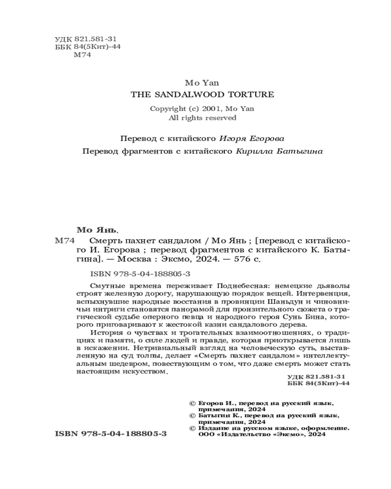 💳 Оплатить за товар можно при получении 🇰🇿 Есть бесплатная доставка по Казахстану от 1 дня 🎁 Копите бонусы с каждой покупки Серия: Loft. Лучшие произведения Мо Яня Новый роман Нобелевского лауреата 2012 года и величайшего китайского писателя современности Мо Яня в новом красочном оформлении! Невыносимо прекрасный роман о героической смерти народного певца, приговоренного к страшной казни сандалового дерева, во время которой человек должен несколько дней испытывать муки, прежде чем испустить дух. Удушающе величественная атмосфера Китая начала XX века, перемешанная с полусказочными образами и симфонией ужаса. |
