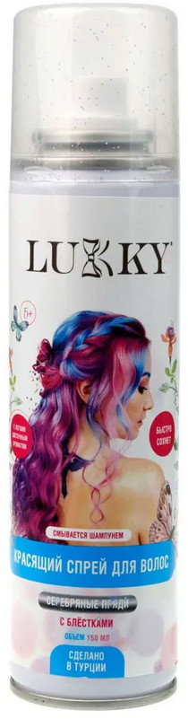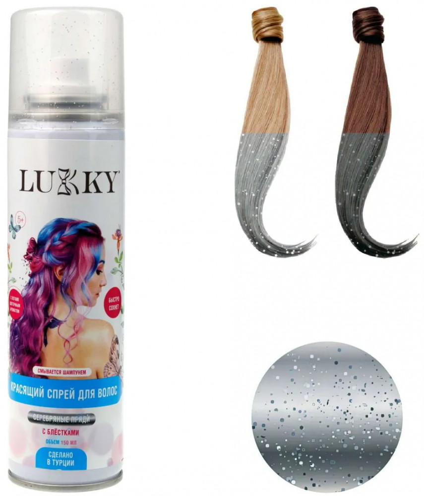 Lukky Спрей-краска для волос, оттенок серебряный с блёстками
