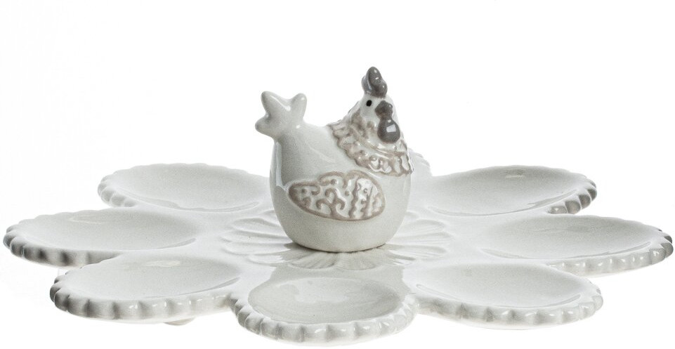 Remeco club Тарелка для яицВ данный момент этот товар отсутствует в продаже. Возможно, у нас найдется аналогичный или похожий товар здесь. Серия: Пасхальный декор «Пасха в деревне» Подставка для яиц — это изысканный аксессуар, который добавит праздничное настроение и элегантность вашему столу. Изготовлена из керамики, имеет стильный дизайн. Основной декоративный элемент подставки — фигурка курочки, расположенная в центре. Размеры подставки оптимальны для размещения восьми яиц среднего размера. |