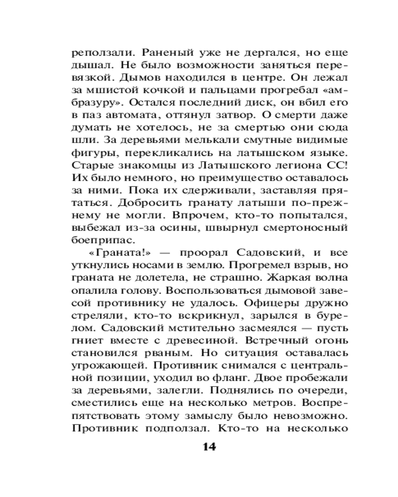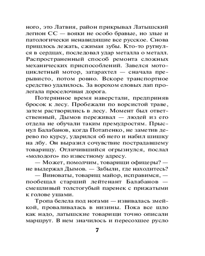 Зловещий лабиринтАлександр Александрович Тамоников В данный момент этот товар отсутствует в продаже. Возможно, у нас найдется аналогичный или похожий товар здесь. Серия: Солдаты СМЕРШ. Романы о неизвестных боях (обложка) Май 1945 года. Окруженная в Прибалтике курляндская группировка вермахта сопротивляется из последних сил. Фашисты намерены вывести морем секретную лабораторию по производству новейшего биостимулятора для личного состава. Чтобы не допустить этого, в расположение германских частей забрасывается группа майора СМЕРШа Владислава Дымова. Разведчики вступают в бой с многочисленной охраной и, в конце концов, проникают на объект. Но разъяренные немцы подтягивают подкрепление. Чтобы выполнить приказ, израненные, окруженные врагами, наши бойцы решаются на отчаянный шаг... |