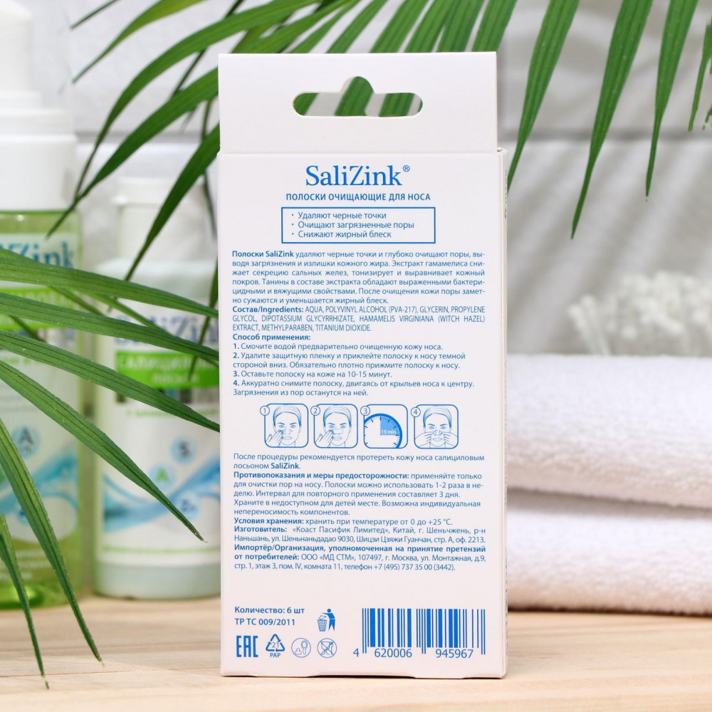 SaliZink Полоски очищающие для носа с экстрактом гамамелиса-40% +57