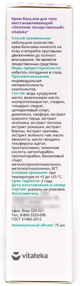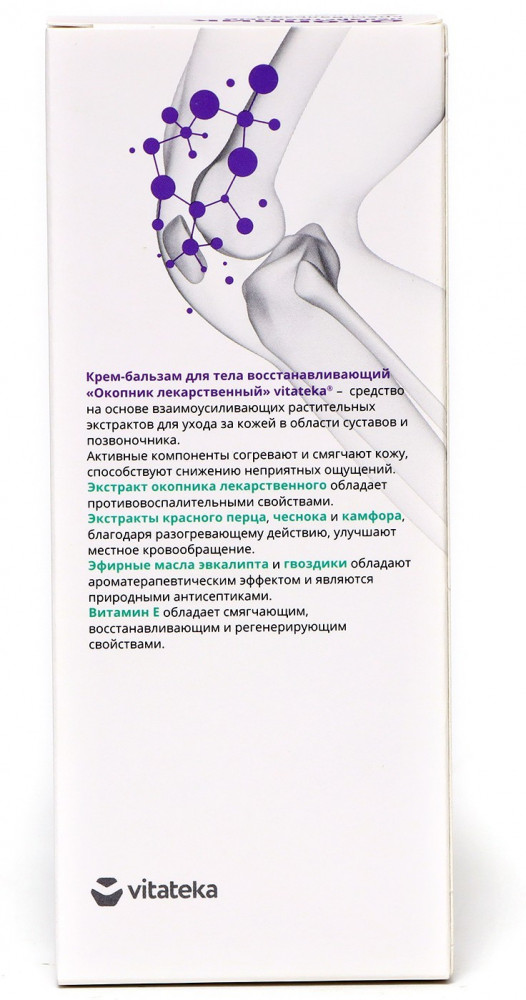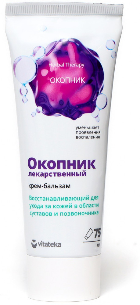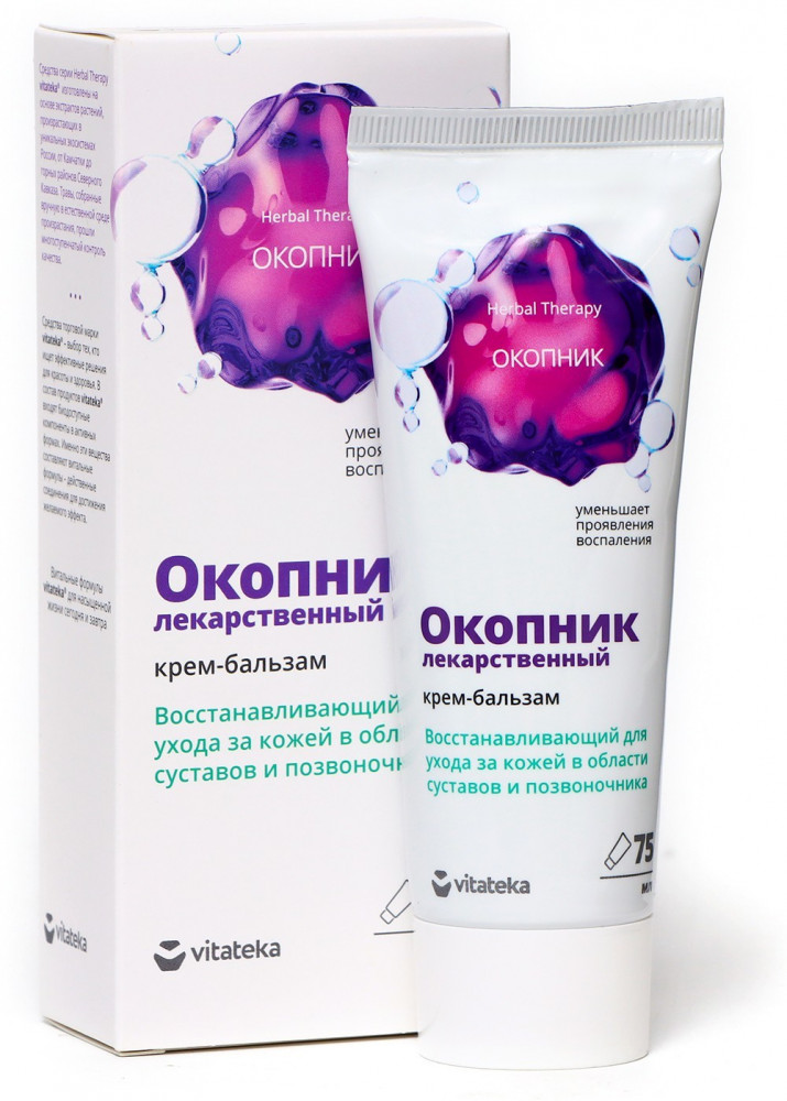 vitateka Крем-бальзам для тела «Окопник лекарственный»В данный момент этот товар отсутствует в продаже. Возможно, у нас найдется аналогичный или похожий товар здесь. Крем-бальзам для тела восстанавливающий с Окопником — эффективное средство на основе растительных экстрактов местного применения при заболеваниях суставов и опорно-двигательного аппарата. |