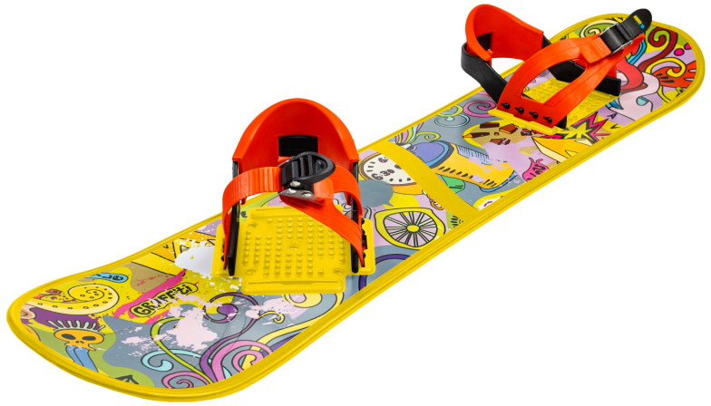 Пластиковые сноуборды с жёсткими креплениями изготовлены специально для начинающих райдеров. Морозостойкий пластик, способный выдержать динамические нагрузки и специальные шипованные площадки для ног рассчитаны на повседневную обувь, позволяют выполнять простейшие элементы сноубординга и весело проводить время.