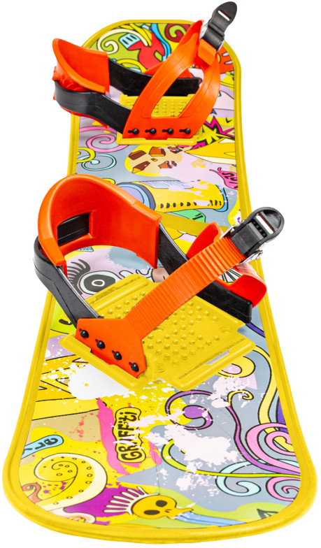 Пластиковый сноуборд с креплениями изготовлен из качественных материалов. Он позволит Вам отправиться на склон и скатиться со снежной горы, ловя заряд позитива и адреналина. Сноуборд имеет стильный дизайн с раскраской под граффити. На корпусе изделия расположены специальные крепления, необходимые для фиксации ног.