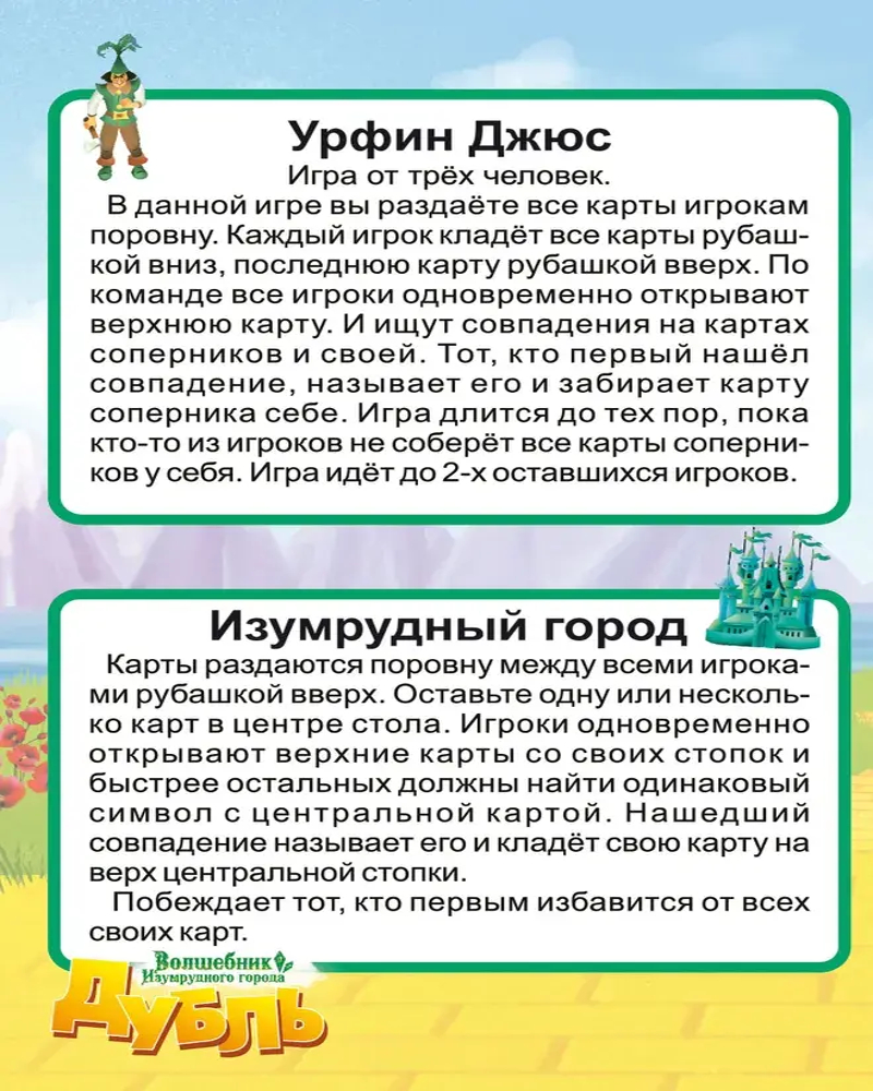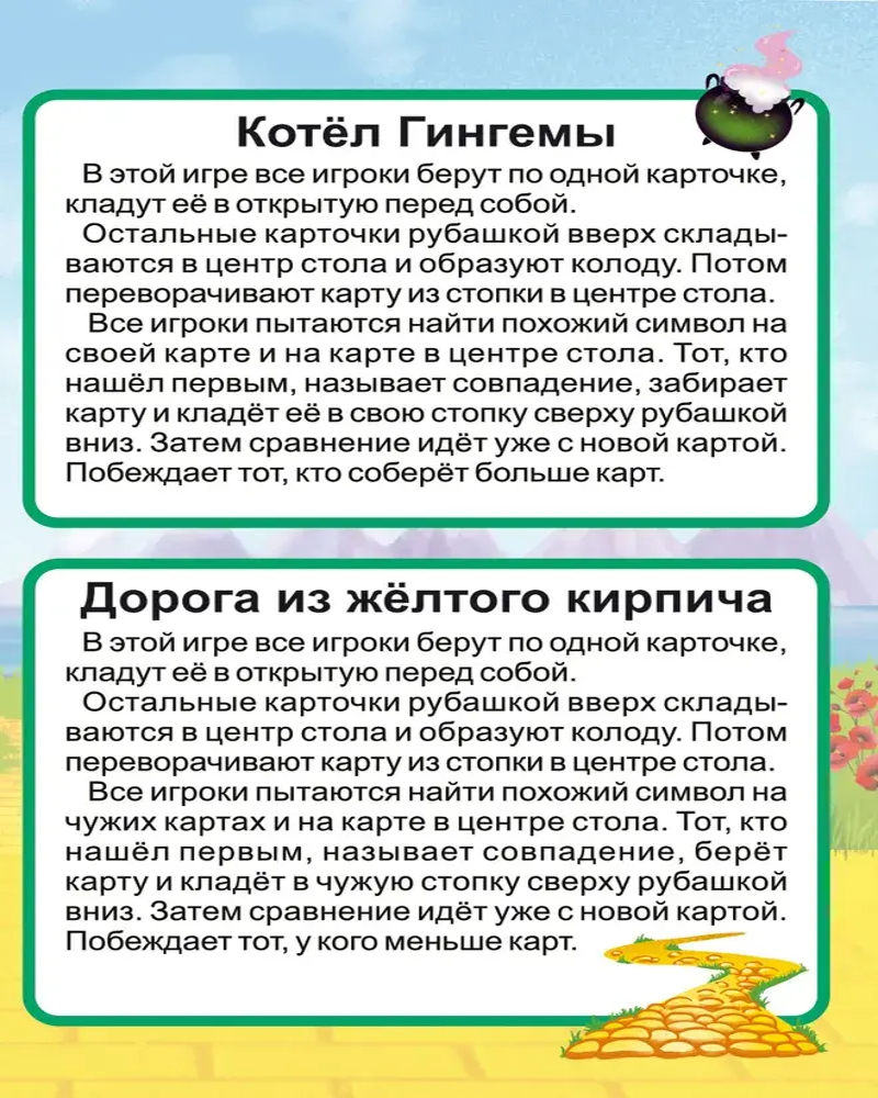 Авторами игры предлагается 6 разных игр, которые описаны в брошюре. Принцип в них одинаковый, нужно быстрее других находить одинаковые картинки на открытых карточках. Игра тренирует внимательность и скорость реакции. Она будет интересна и детям, и взрослым.