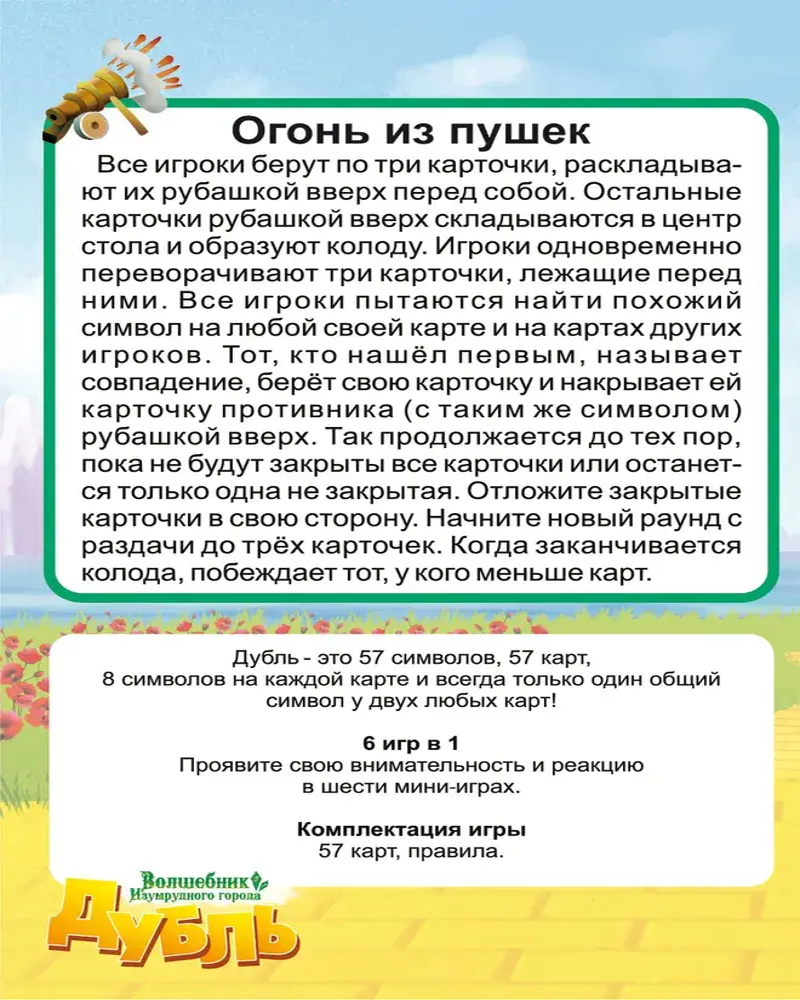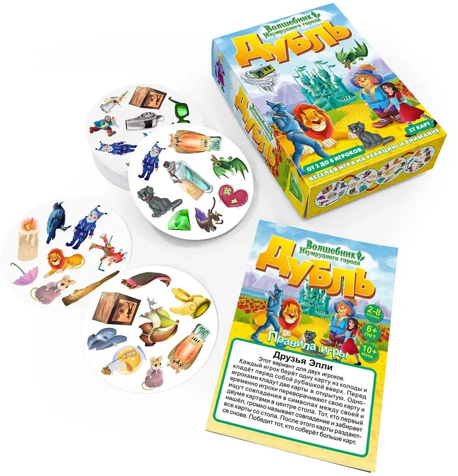 Веселая игра на реакцию и внимание «Дубль» — это 57 символов, 57 карт, 8 символов на каждой карте и всегда только один общий символ у двух любых карт!