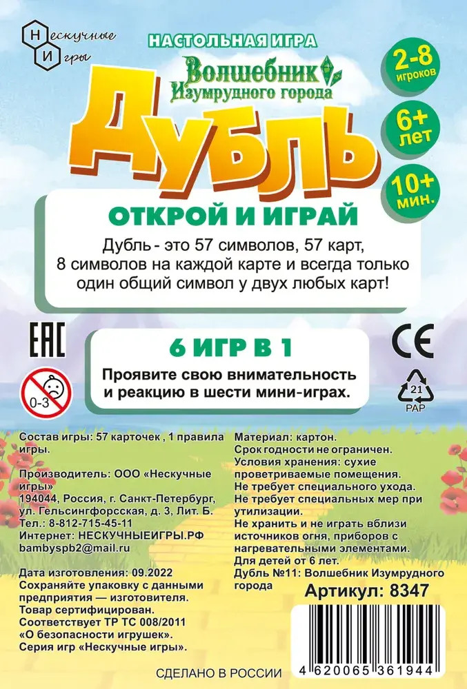 Производитель «Нескучные игры» — ваш надежный партнер в мире детского развития и веселого обучения. С гордостью представляем наш уникальный ассортимент игр, специально разработанных для ваших маленьких учеников. Наш бренд «Нескучные игры» известен своим высоким качеством и инновационным подходом к образованию. Каждая игра не только весела и увлекательна, но и способствует развитию различных навыков у детей. Мы предлагаем широкий выбор игр, включая обучающие карточные игры, головоломки,...