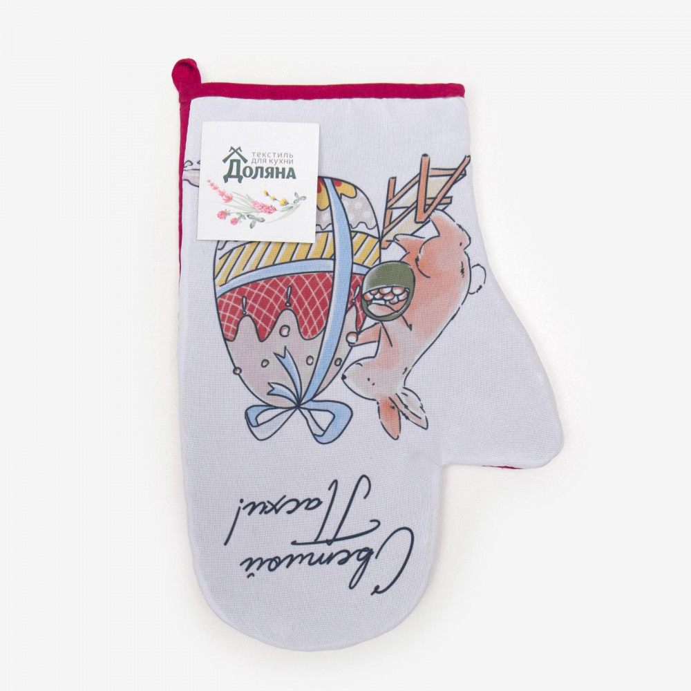 Доляна Варежка-прихватка «Пасха»В данный момент этот товар отсутствует в продаже. Возможно, у нас найдется аналогичный или похожий товар здесь. Серия: Кухонный текстиль к Пасхе Прихватка-варежка — незаменимый аксессуар на любой кухне, который сделает процесс приготовления комфортным и безопасным: защитит нежные руки хозяюшки от ожогов, не «убежит» из поля зрения благодаря удобной петельке, станет настоящим украшением помещения. Прихватка изготовлена из высококачественного материала — прочного и долговечного. Материал наполнителя ватин. |