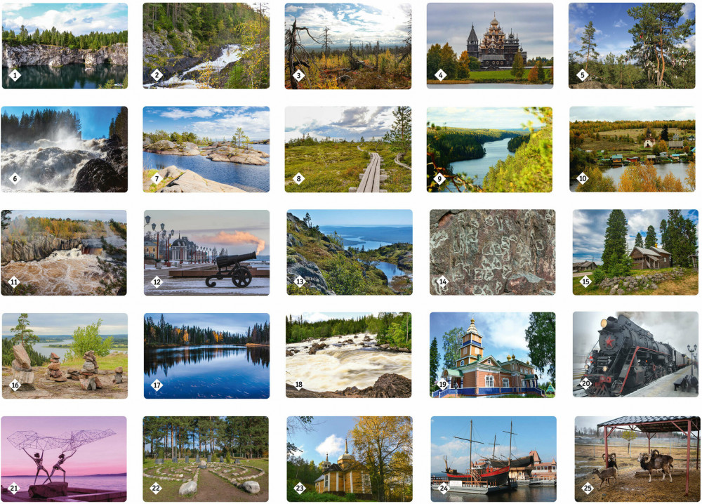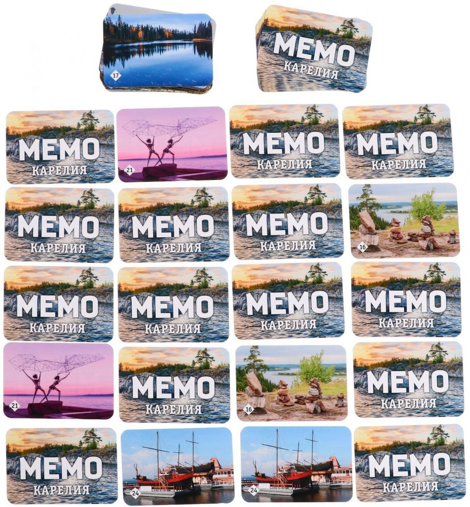 Игра состоит из карточек с парными изображениями. Всего 25 пар (50 карточек). Вы и не заметите, как запомните всё, что изображено на карточках. Это игра, безусловно, расширяет кругозор, развивает внимание, тренирует память. Также в комплекте вы найдёте буклет с описанием всех мест, изображённых на карточках. Наверняка, вы узнаете много нового.