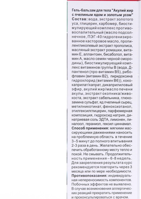 | Акулий жир Гель-бальзам для тела с пчелиным ядом и с золотым усом «Акулий жир»+23 (бонуса)