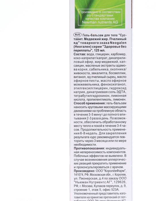 | КоролёвФарм Гель-бальзам для тела с пчелиным ядом «Суставит. Медвежий жир»+19 (бонусов)