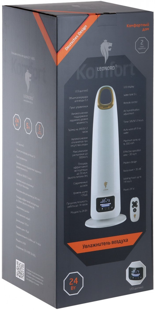 Leonord Увлажнитель воздуха LE-1605В данный момент этот товар отсутствует в продаже. Возможно, у нас найдется аналогичный или похожий товар здесь. Увлажнитель Leonord LE-1605 (объем 5л, распыление до 300мл/час), LED дисплей, объем резервуара для воды 5л. Пульт управления, регулировка степени увлажнения воздуха, таймер на 3/6/6/12 часов, автоматическое отключение при отсутствии воды. Максимальное распыление до 300мл/ч, автоматическое поддержание заданного уровня влажности. Современный дизайн, легко наполнять водой и мыть. |