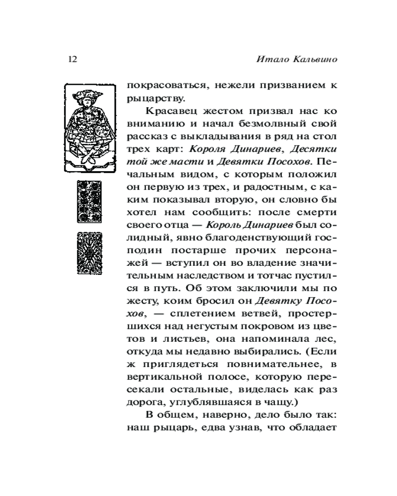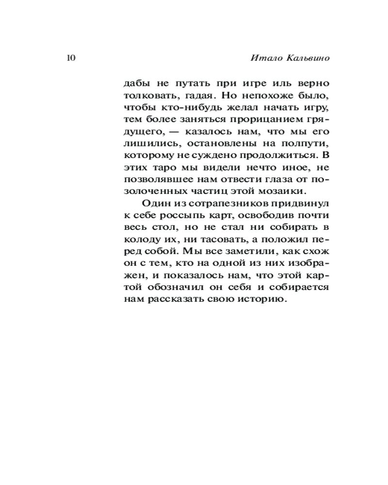 Серия: Эксклюзивная классика Два концептуально связанных романа, представляющих собой классику постмодернистской литературы, а точнее, произведения, в которых принципы этой литературы формируются. Многообразие способов гадания на Таро и скрытые цитаты из Майринка и Кафки. Отсылки к средневековым легендам, древнему североевропейскому эпосу и буддистской философии, обрамленные стилистикой новелл Итальянского Возрождения. Сам Кальвино называл «Замок скрестившихся судеб» и «Таверну скрестившихся судеб» «книгами-грифонами» — но сейчас их стоит отнести к традиции романа-палимпсеста. Завязка проста — сведенные судьбой дамы и кавалеры повествуют о себе и своих судьбах, но используют при этом не слова, а расклады Таро... |