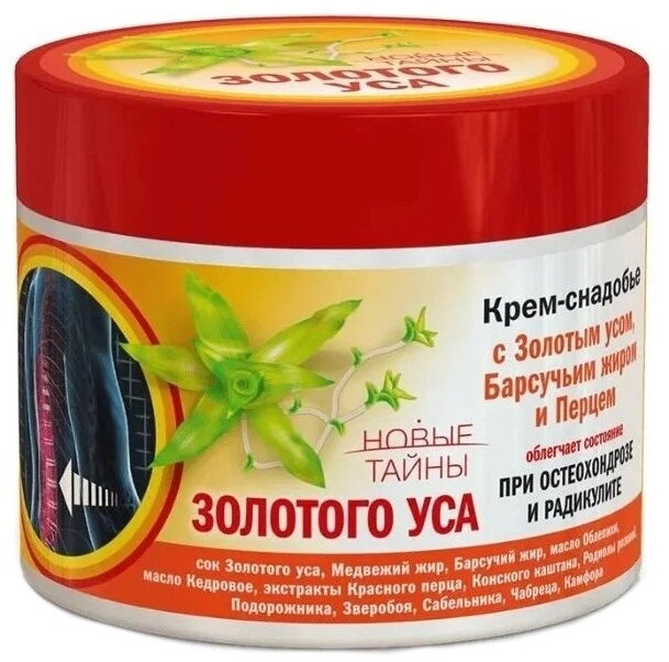 Новые тайны золотого уса Крем-снадобье при остеохондрозе и радикулите с барсучьим жиром и перцемВ данный момент этот товар отсутствует в продаже. Возможно, у нас найдется аналогичный или похожий товар здесь. Крем-снадобье предназначен для облегчения состояния при остеохондрозе, радикулите, мышечных и невралгических болях. Оказывает выраженное согревающее и успокаивающее действие. Содержит натуральные компоненты, которые активизируют кровообращение, нормализуют обменные и восстановительные процессы, смягчают кожу, уменьшают чувство дискомфорта и болевые ощущения. |