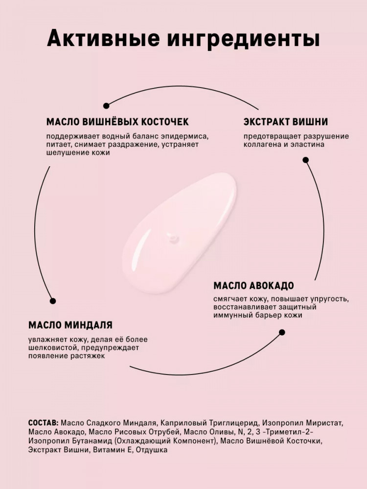 шикарный запах вишни. есть ментол в составе. хорошо впитывается