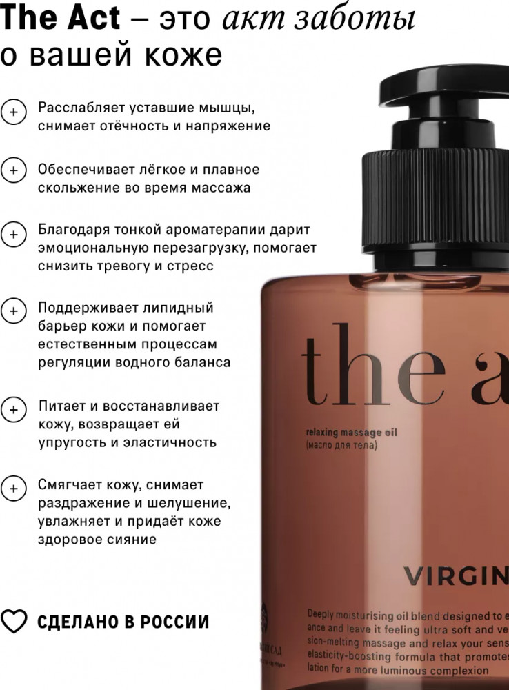 The Act Масло для тела массажное парфюмированное «Relaxing Massage Oil Virgin»