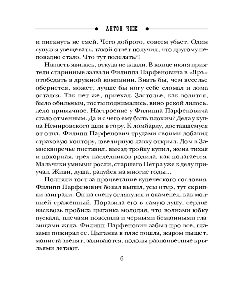 Исторический детектив Антона Чижа продолжает Вселенную Ванзарова, но акцент — на других, более молодых и романтических героях. Интрига рождается на пересечении нескольких сюжетных линий, затрагивающих и цыганское проклятие, и даже судьбу Антона Павловича Чехова... |