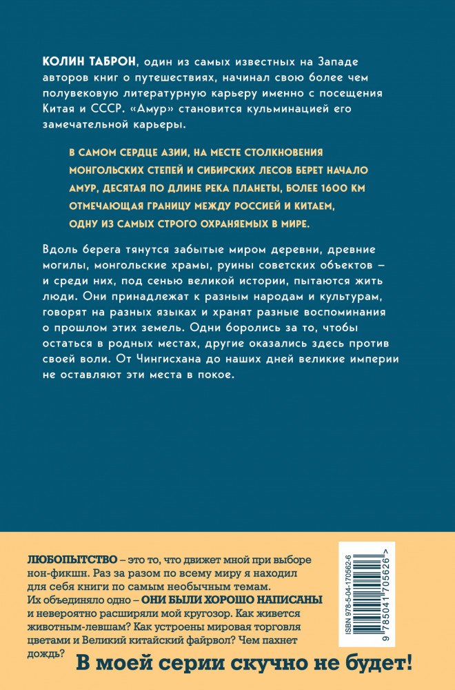 💳 Оплатить за товар можно при получении 🇰🇿 Есть бесплатная доставка по Казахстану от 1 дня 🎁 Копите бонусы с каждой покупки Серия: Кругозор Дениса Пескова Колин Таброн, один из самых известных на Западе авторов книг о путешествиях, начинал свою более чем полувековую литературную карьеру именно с посещения Китая и СССР. «Река Амур» становится кульминацией его замечательной карьеры. |