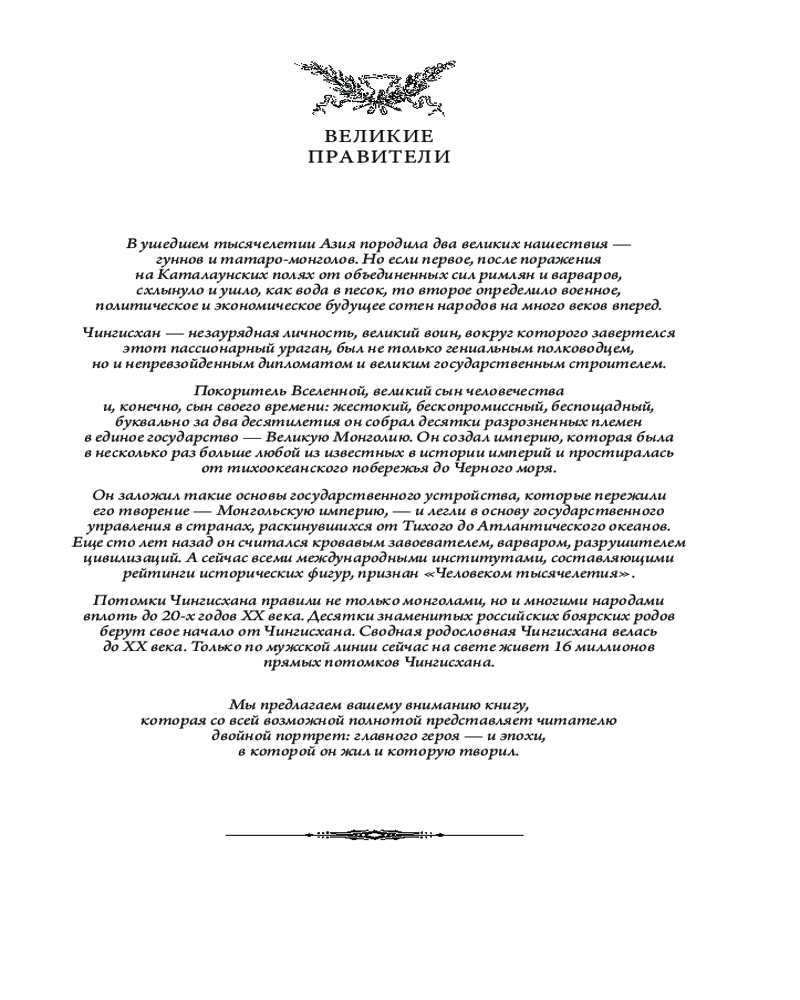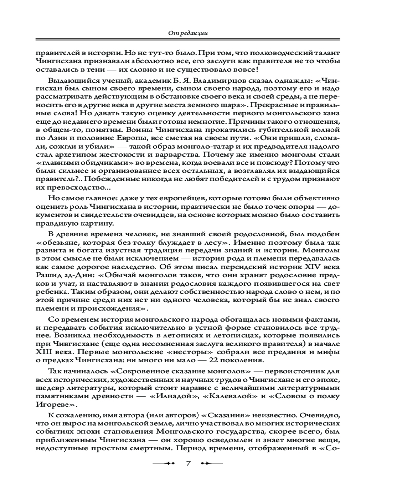 Чингисхан. Сокровенное сказание монголов. Великая ЯсаВ данный момент этот товар отсутствует в продаже. Возможно, у нас найдется аналогичный или похожий товар здесь. Серия: Дорогие книги. Эксклюзив. Коллекция «Всеобщая история стран и народов мира» Новый том серии «Всеобщая история стран и народов мира» представляет читателю основателя и первого Великого хана Монгольской империи — Чингисхана. Отличительной особенностью книги является ее исключительная полнота: в основе издания древнейший монгольский литературный и исторический памятник — «Сокровенное сказание монголов» в современном переводе, дополненный фрагментами яс (законов) и биликов (высказываний Чингисхана). В приложениях представлены извлечения из тюркских, персидских, китайских и европейских источников, составленных современниками правления Чингисхана и его наследников. Содержательность, аутентичность и увлекательность — главные достоинства книги. Издание богато иллюстрировано, что позволит читателям не просто прочесть о событиях и их участниках, но и увидеть, какими они были. |