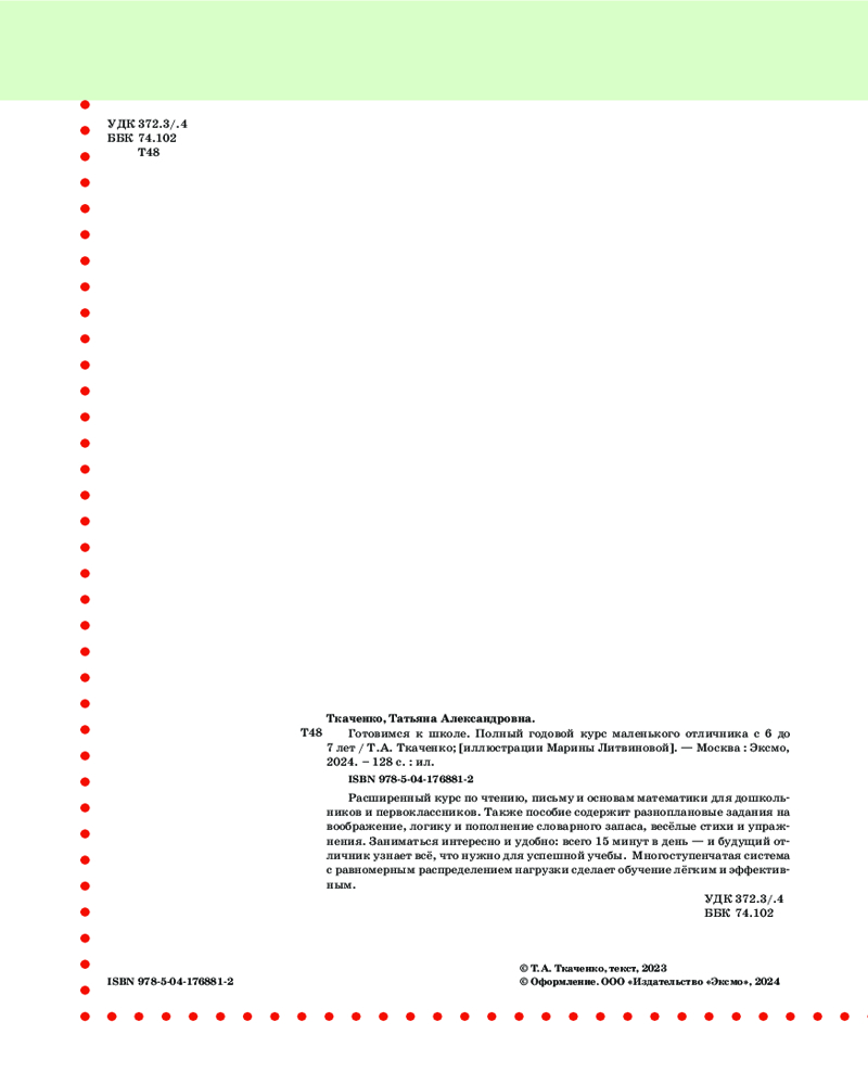 Готовимся к школе. Полный годовой курс 6-7 летТатьяна Александровна Ткаченко +123