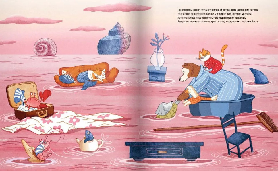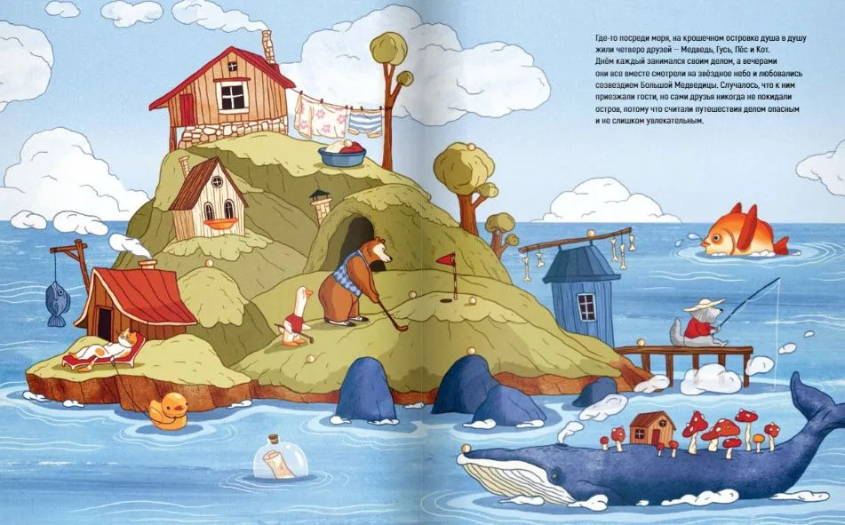 💳 Оплатить за товар можно при получении 🇰🇿 Есть бесплатная доставка по Казахстану 🎁 Копите бонусы с каждой покупки На крошечном островке посреди моря жили четверо друзей — Медведь, Гусь, Пёс и Кот. Случалось, что к ним приезжали гости, но сами друзья никогда не покидали остров, потому что считали путешествия делом опасным и не слишком увлекательным. Но однажды ночью всё изменилось. Друзьям пришлось отправиться в плавание. Что ждёт их на пути? И где они отыщут счастье? |
