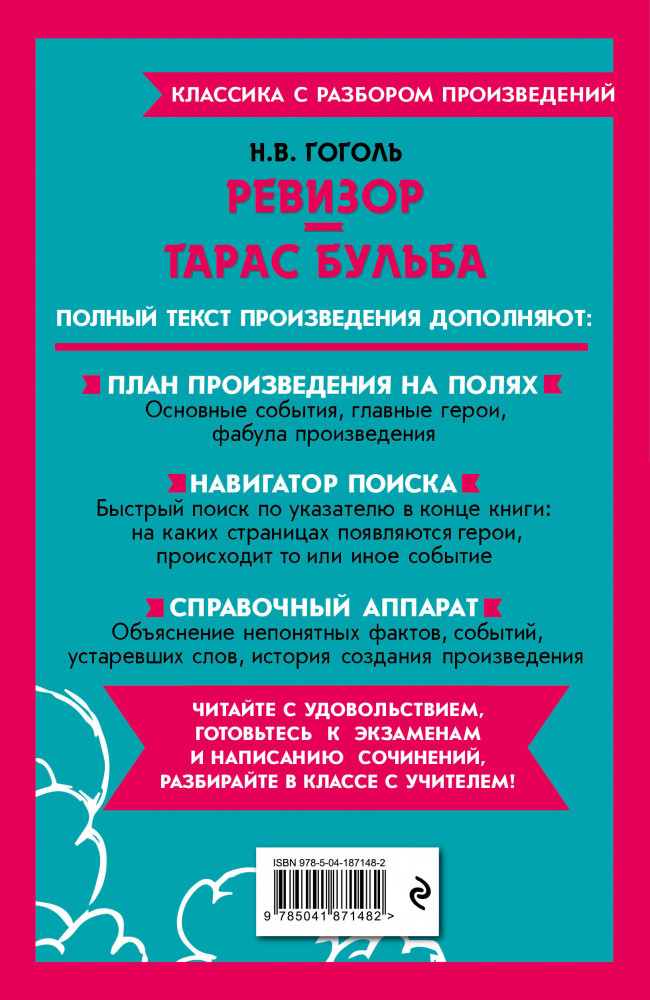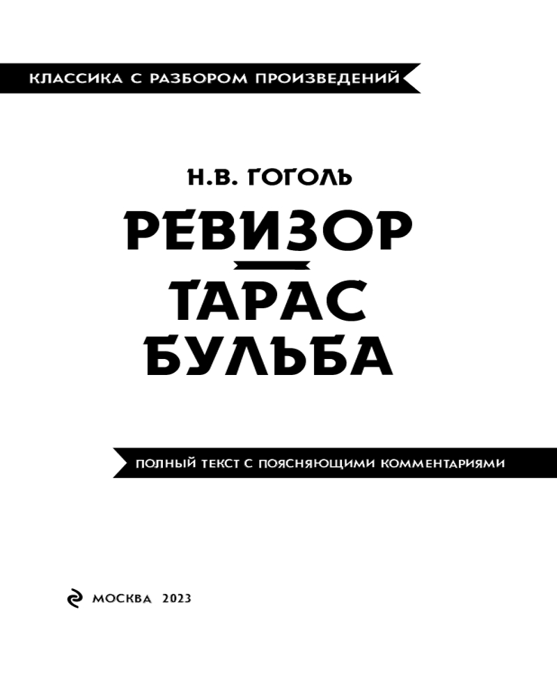 В данный момент этот товар отсутствует в продаже. Возможно, у нас найдется аналогичный или похожий товар здесь. Серия: Классика с разбором произведений В сборник вошли легендарная пьеса «Ревизор» и повесть «Тарас Бульба», написанные выдающимся прозаиком и драматургом Н. В. Гоголем. Эти произведения русской литературы оголяют человеческие пороки и ставят вечные вопросы, поэтому до сих пор пользуются большой популярностью как среди школьников, так и среди представителей старшего поколения.