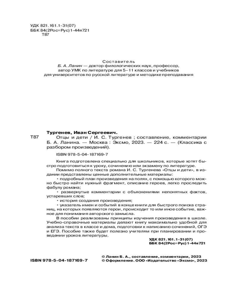 В данный момент этот товар отсутствует в продаже. Возможно, у нас найдется аналогичный или похожий товар здесь. Серия: Классика с разбором произведений «Отцы и дети» — культовый роман в истории русской литературы, написанный И. С. Тургеневым — талантливым представителем плеяды писателей-реалистов XIX века. Эта гениальная книга до сих пор пользуется большой популярностью как среди школьников, так и среди представителей старшего поколения.