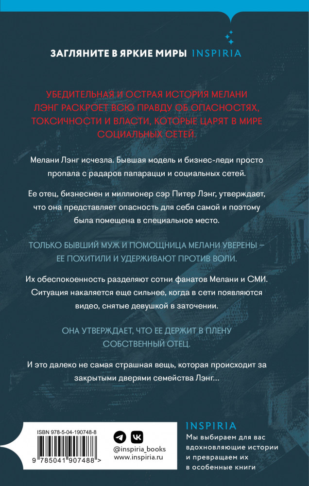 💳 Оплатить за товар можно при получении 🇰🇿 Есть бесплатная доставка по Казахстану от 1 дня 🎁 Копите бонусы с каждой покупки Серия: Tok. Мировые хиты История Мелани Лэнг раскроет всю правду об опасностях, токсичности и власти мира социальных сетей. |
