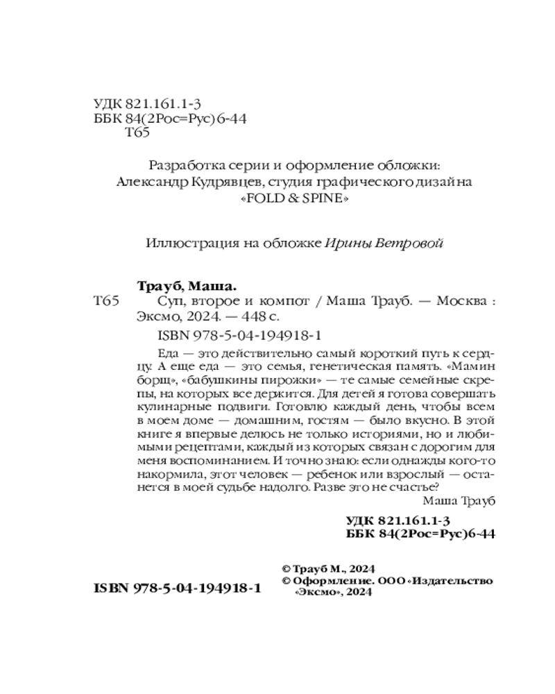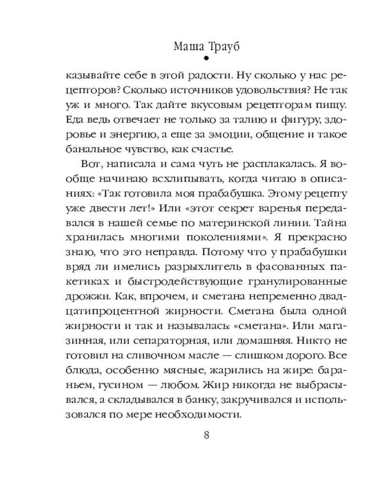 Серия: Проза Маши Трауб. Жизнь как в зеркале (обложка) Известно, что семьи, где каждый день варят суп, реже распадаются. Где связь, спросите вы. Все просто. Что объединяет членов семьи? Общий стол под абажуром и вкусная еда на нем. Любая мудрая женщина подтвердит: хочешь договориться с мужем — сначала покорми его. Хочешь, чтобы дети были здоровы и веселы — приготовь то, что они любят. |