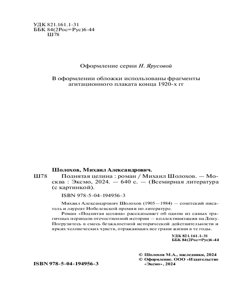 💳 Оплатить за товар можно при получении 🇰🇿 Есть бесплатная доставка по Казахстану от 1 дня 🎁 Копите бонусы с каждой покупки Серия: Всемирная литература (новое оформление) Михаил Александрович Шолохов (1905-1984) — советский писатель и лауреат Нобелевской премии по литературе. |