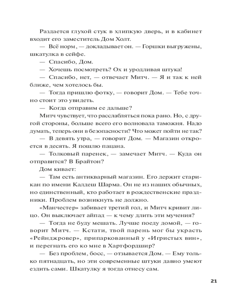 Интересно было почитать очередную книгу данного автора. Детектив в Английском современном стиле. Доставка как всегда в срок. Книга в отличном виде. Упаковка бережная. Флип на уровне, как всегда!