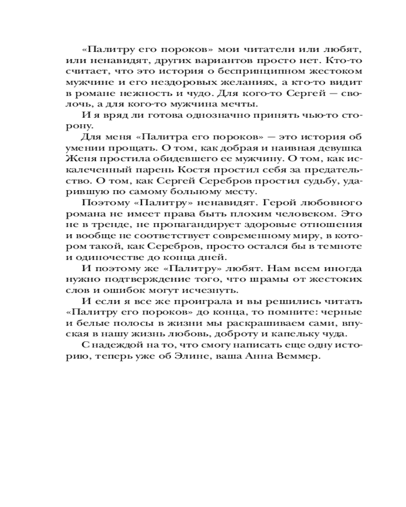 Серия: За шаг до любви. Романы Анны Веммер Книги Анны Веммер — новое слово в жанре современной сентиментальной прозы. Каждый роман автора — это трогательная история о семейных ценностях, дружбе и любви. |