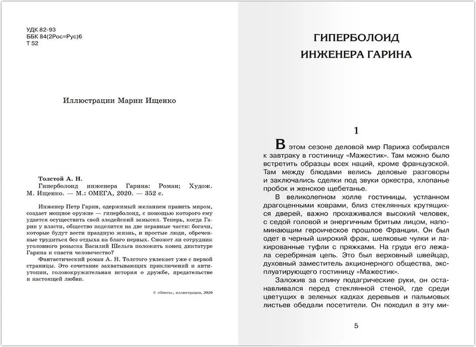 Серия: Школьникам. Проверено временем Научно-фантастический роман Алексея Толстого «Гиперболоид инженера Гарина» — невероятная история талантливого ученого, мечтающего обрести власть над всем миром при помощи грозного оружия — теплового чудо-луча. Одержимый этой безумной идеей, русский инженер Пётр Гарин крадёт у своего наставника новейшее изобретение — лазерную пушку небывалой разрушительной силы. Стремясь добиться поддержки американского химического короля и миллиардера Роллинга, Гарин путём обмана, шантажа и угроз добивается своей цели и получает в своё распоряжение целый остров, на котором строит гигантский гиперболоид. |