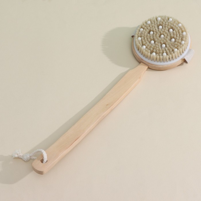 Щётка улучшает микроциркуляцию крови и отшелушивает ороговевшие клетки. Длинная ручка позволит помассировать труднодоступные участки тела, например, спину и поясницу.