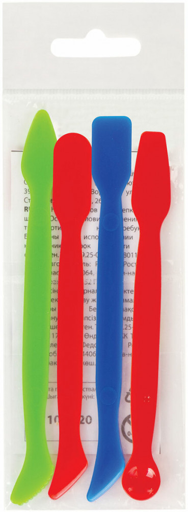 В наборе ПИФАГОР 4 стека для лепки разного вида, назначения и цветов (красный, зеленый, синий). Наконечники стеков имеют самую разнообразную форму: плоскую, треугольную, остроугольную, закругленную, круглую. Предназначен для работы с пластилином, полимерной и любой другой глиной, а также с гипсом и прочими формующимися пластиками. Набор упакован в пакет с европодвесом.