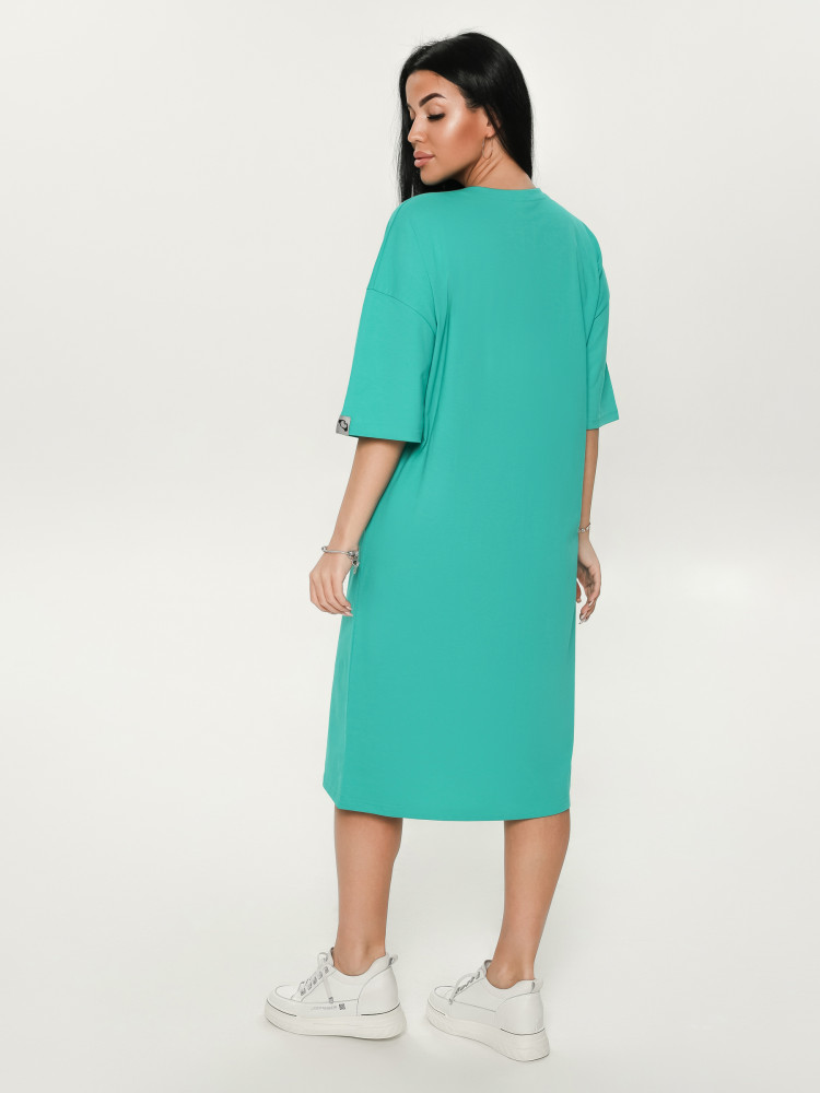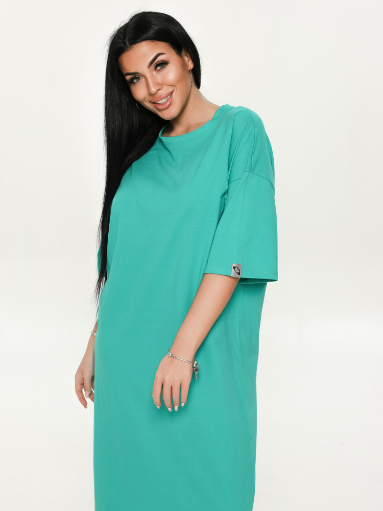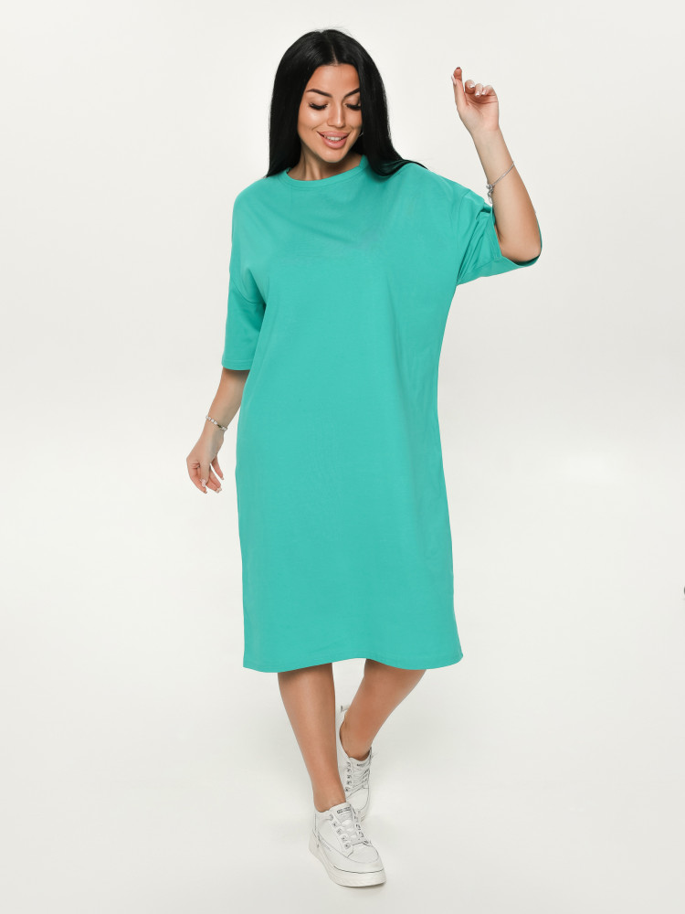 Платье отличное! Хороший трикотаж, не линяет при стирке теплой водой, форму держит. Цвет как на фото, размер соответствует