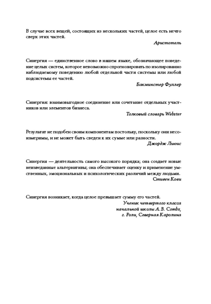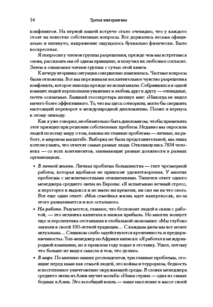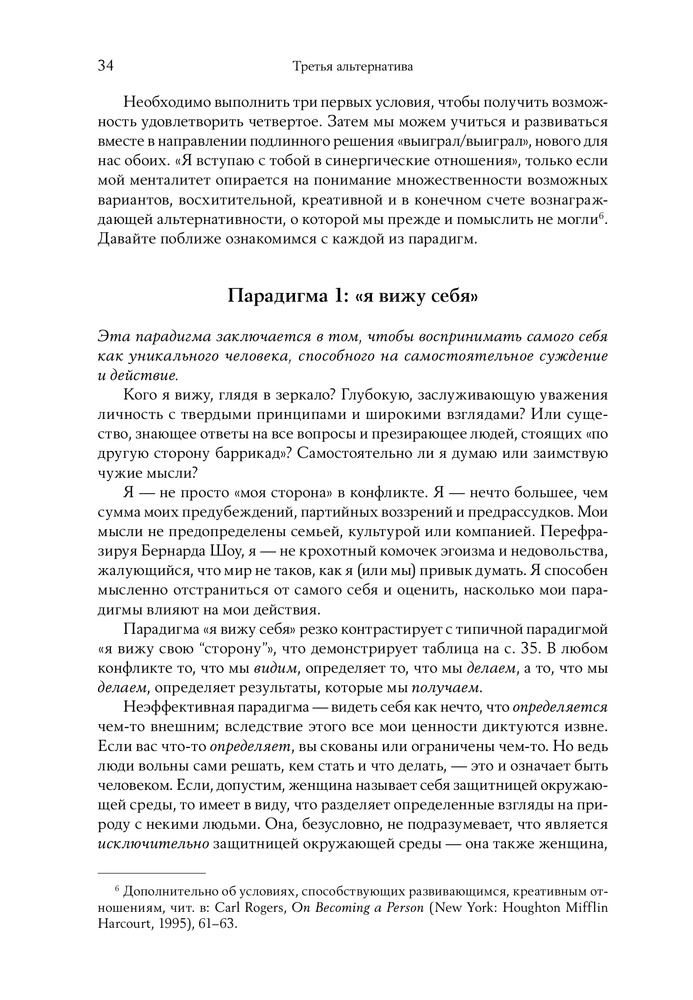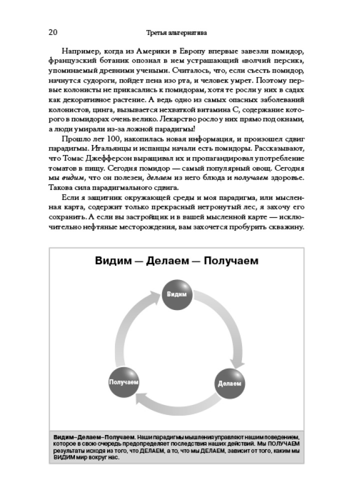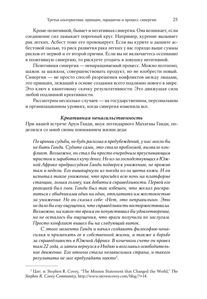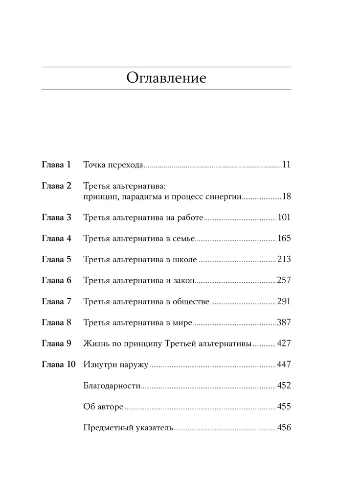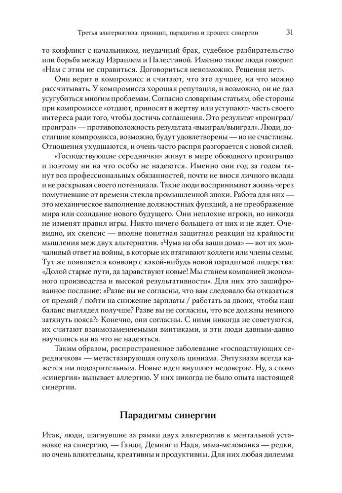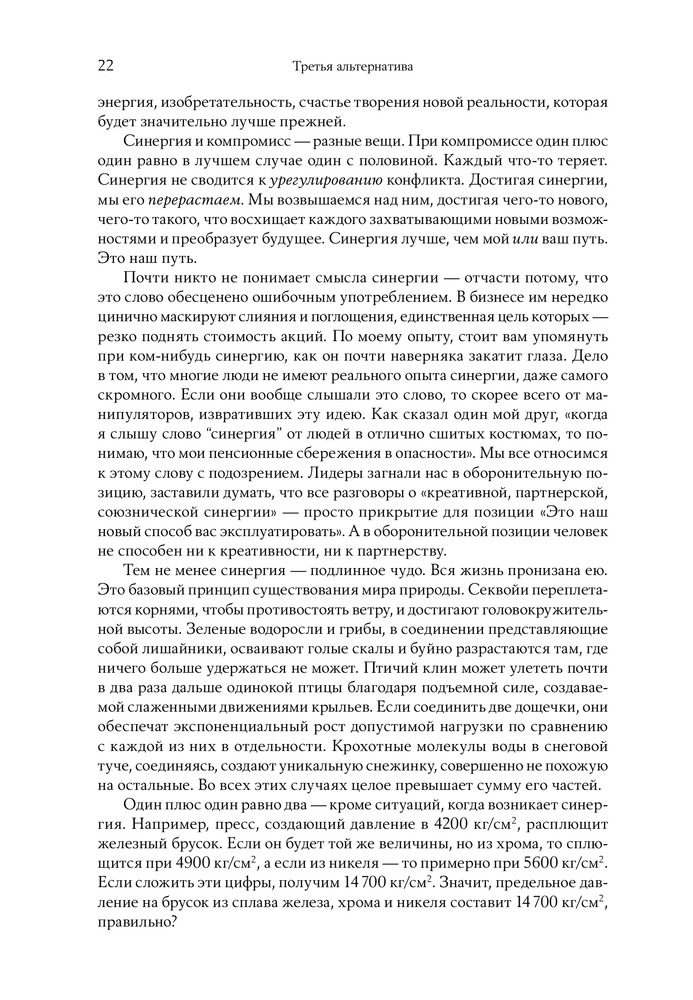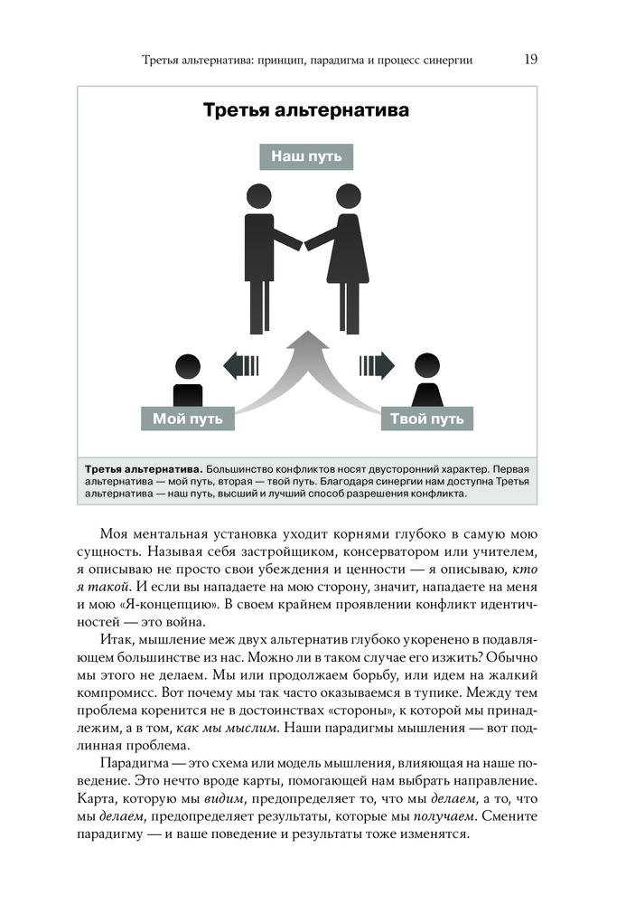 Третья альтернатива. Решение самых сложных жизненных проблемВ данный момент этот товар отсутствует в продаже. Возможно, у нас найдется аналогичный или похожий товар здесь. Многие из нас в спорных ситуациях привыкли мыслить меж двух альтернатив: если я выиграю, ты проиграешь, и наоборот. Стивен Кови предлагает Третью альтернативу — революционный подход к урегулированию конфликтов, основанный на синергии. Как сплав прочнее каждого из составляющих его металлов, так и синергия — не компромисс, а нечто новое, соединение таланта и творческих способностей противоборствующих сторон, благодаря чему принятое ими креативное решение превосходит те, что каждая из них предлагала по отдельности. Третья альтернатива открывает радикально новый и творческий стиль мышления, позволяющий подняться и над конфликтами, и над компромиссами. |