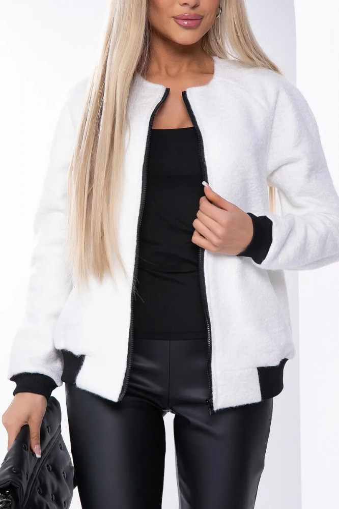 Белоснежный бомбер, рукава реглан.