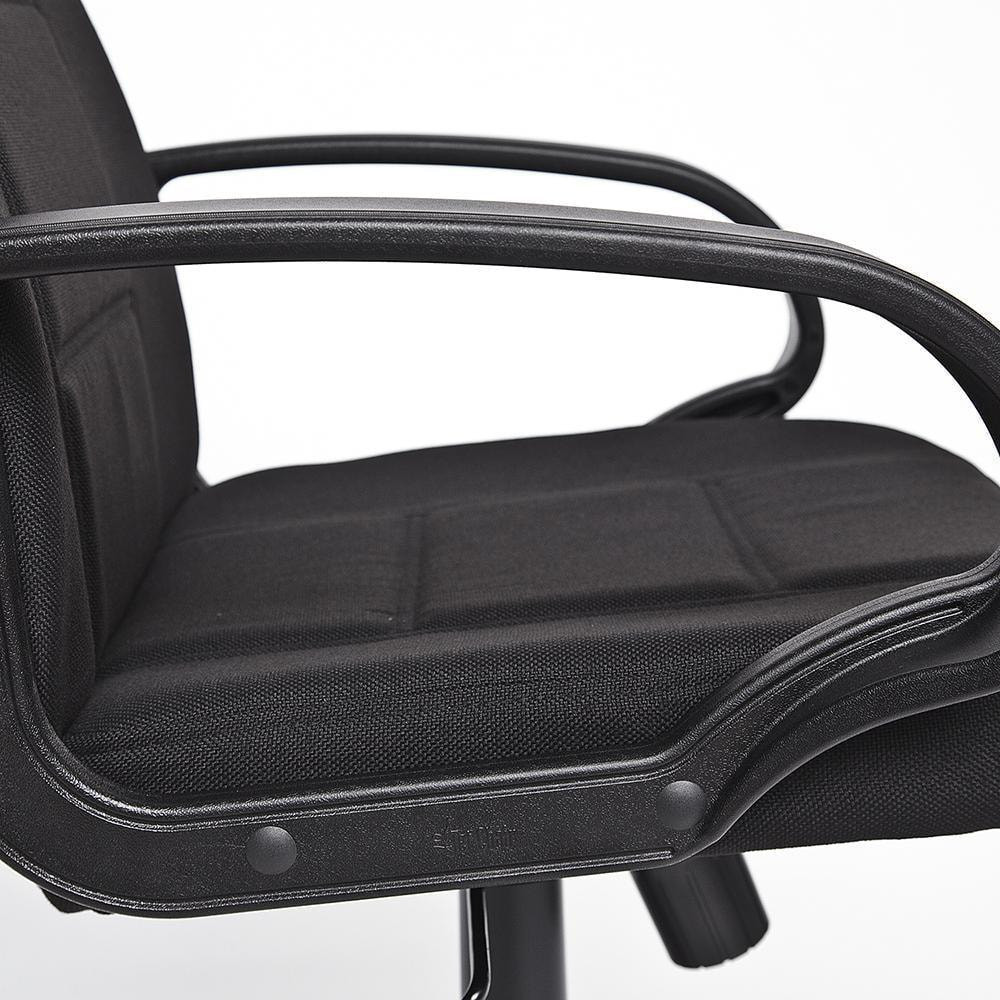Каркас модели изготовлен из прочной фанеры толщиной более 10 мм. Сиденье с мягким наполнителем из пенополиуретана (до 35 кг/м2) стандартной плотности воздухопроницаемо, долговечно, не накапливает пыль, отталкивает воду, гипоаллергенно. Черная пластиковая крестовина основательна, проста в уходе, выглядит стильно и современно. Бесшумные полиамидные ролики позволяют легко перемещать кресло по комнате, не оставляя следов на поверхности пола. Ролики и крестовина в креслах бренда TetChair соответствуют стандарту BIFMA. Во всех креслах бренда TetChair используются газлифты 3 класса, он способен выдерживать вес до 120 кг. Удобные фиксированные пластиковые подлокотники, имеющие надежные крепления, помогут разгрузить суставы и плечи, снимая накопившуюся усталость.