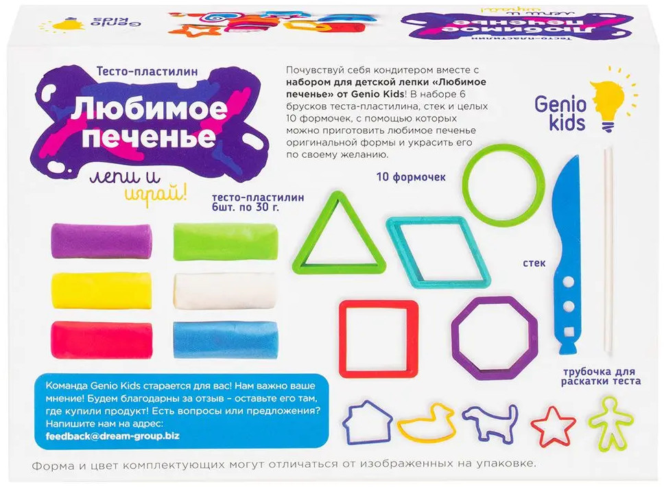💳 Оплатить за товар можно при получении 🇰🇿 Есть бесплатная доставка по Казахстану от 1 дня 🎁 Копите бонусы с каждой покупки С набором для лепки «Любимое печенье» от Genio Kids ребенок сможет приготовить печенье любой формы и украсить его по своему желанию. В наборе 6 брусков теста-пластилина по 30 г и пластиковые аксессуары, которые помогут приготовить печенье. |